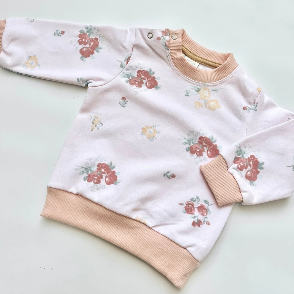 El Buzo Spring está confeccionado en algodón rústico con una estampa hermosa y delicada.