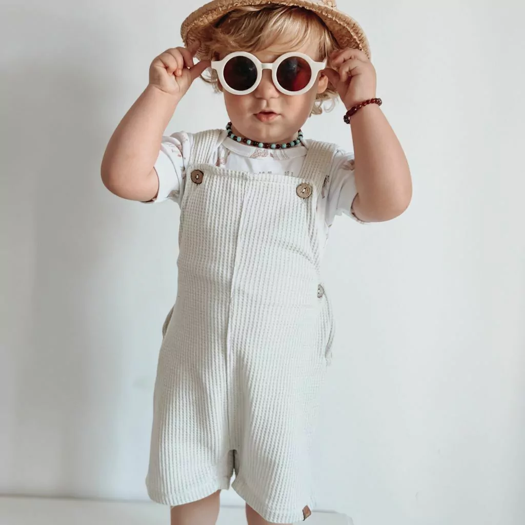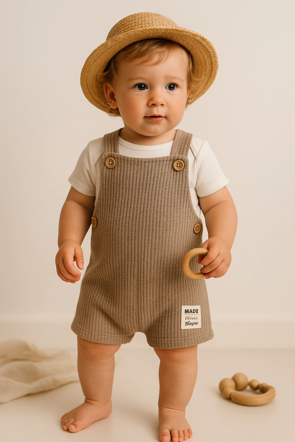 Confeccionado en panal waffle de excelente calidad, liviano y fresco para los días cálidos. Los tiradores con botones de coco ajustables acompañan el crecimiento de tu bebé y le suman un detalle natural que enamora.