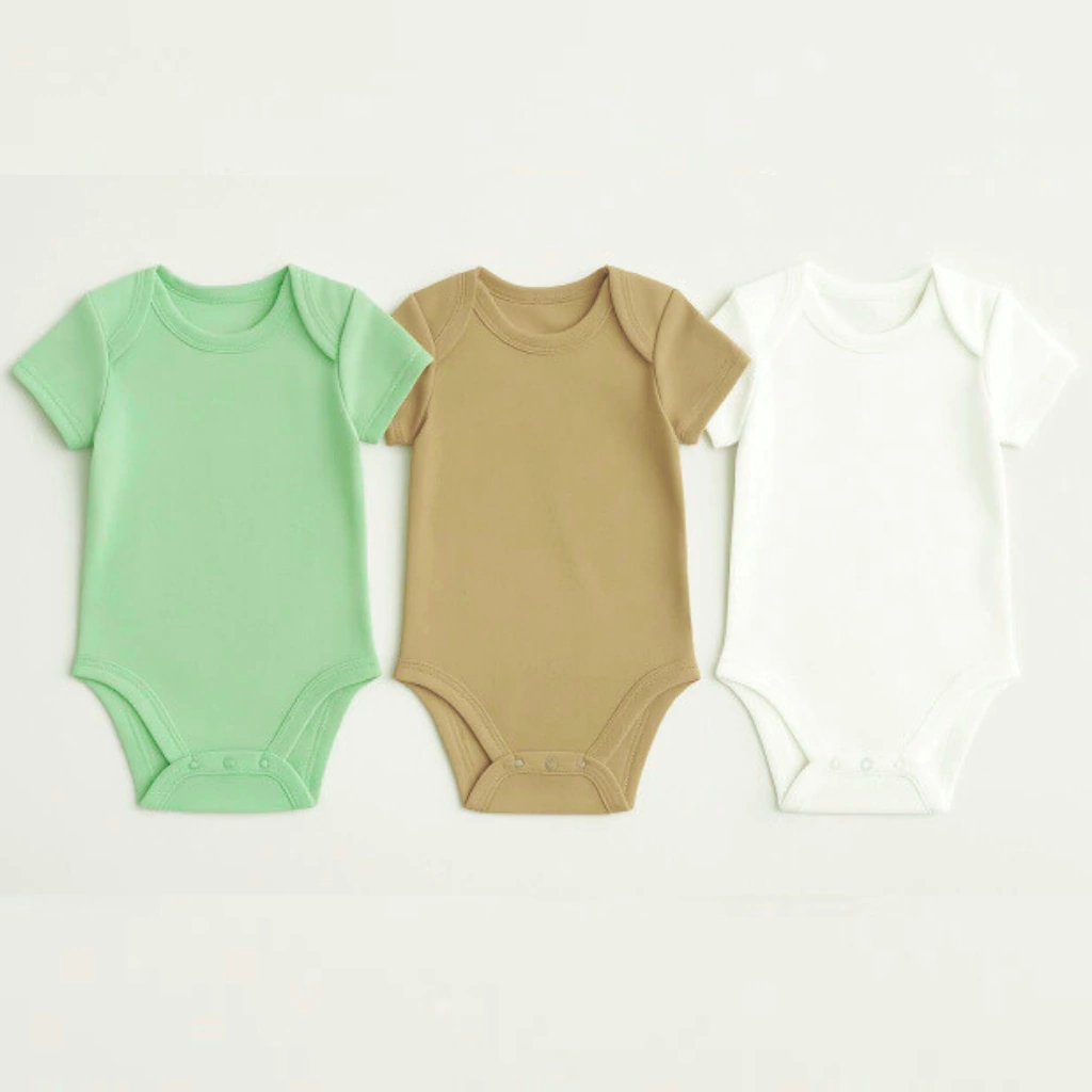 🌟 Diseño: Bodys básicos de manga corta con cuello americano, diseñados para facilitar el cambio sin incomodar. Incorporan broches hipoalergénicos en la parte inferior que aportan practicidad y seguridad en cada uso.